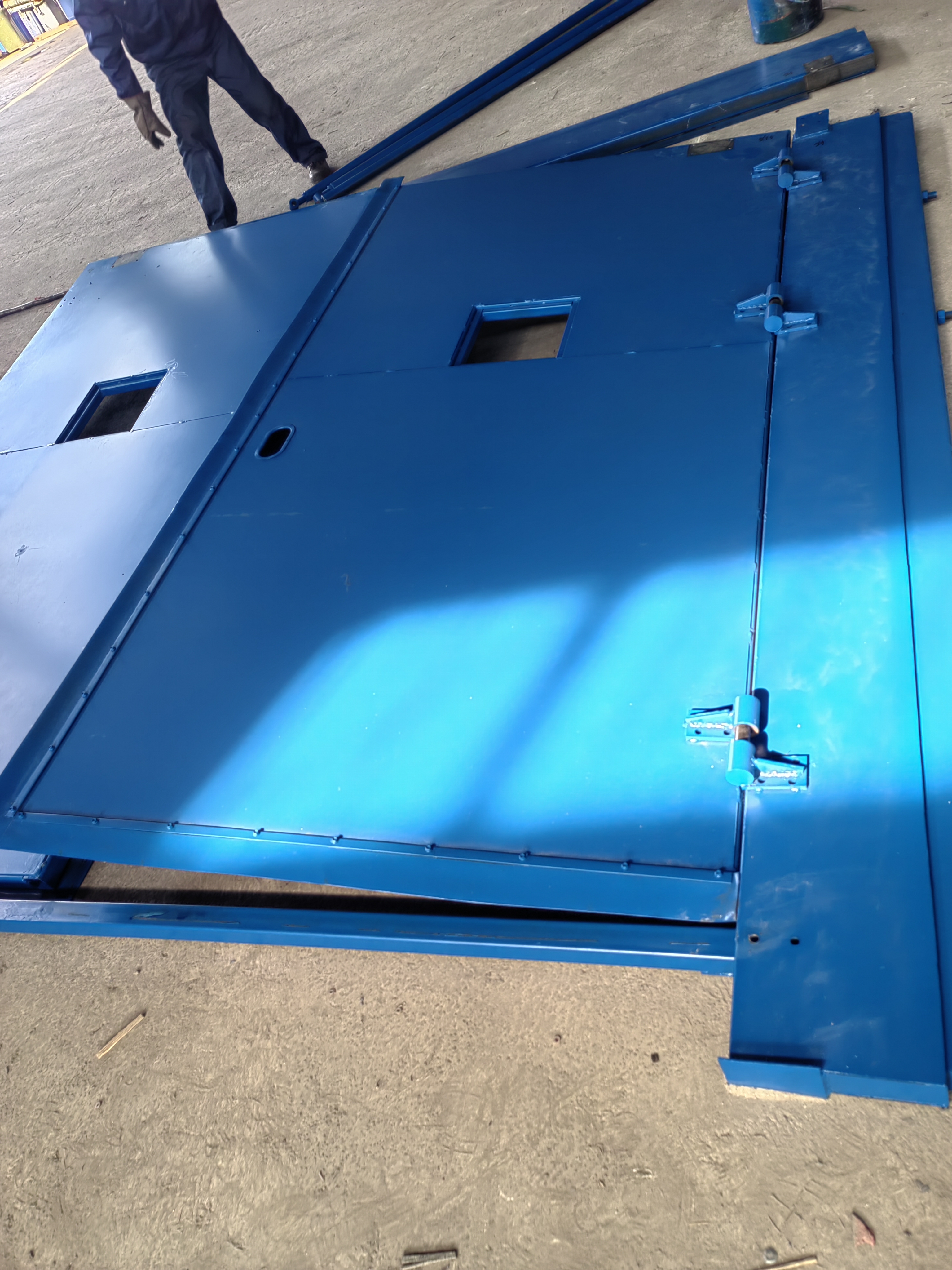 可伸缩抗变形框架:门框的左、上、右三个方向采用嵌套式可伸缩结构,部分型号伸缩量不小于 200mm,搭配可调式支撑螺杆,能实时补偿巷道沉降或收缩变形,且受压后可自动复位。门扇内部用方钢管焊接成稳固骨架,两侧贴合 Q235 或 Q355NE 高强度钢板,内部还焊接 “井” 字形加强筋,可承受较大冲击而不永久变形。